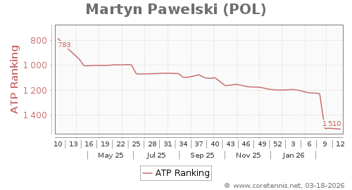 | 893 | Mikael Ymer(SWE) | 3 | 266 | 282 | Graph |