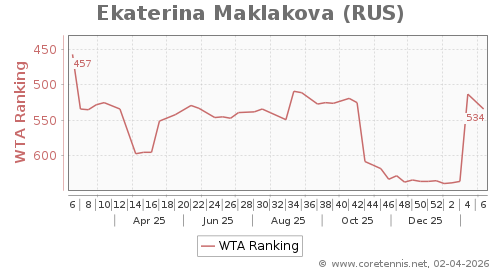 | 534 | Ekaterina Maklakova(RUS) | 21 | 105 | 5 | Graph |