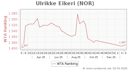 | 1387 | Ulrikke Eikeri(NOR) | 5 | 87 | 28 | Graph |