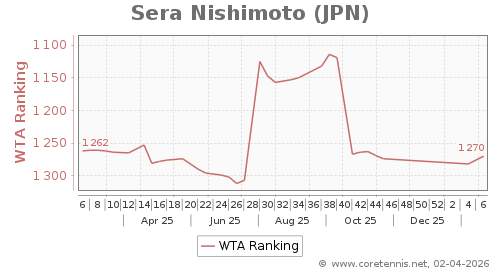 | 1270 | Sera Nishimoto(JPN) | 12 | 204 | 113 | Graph |