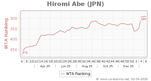 | 289 | Hiromi Abe(JPN) | 3 | 72 | 53 | Graph |