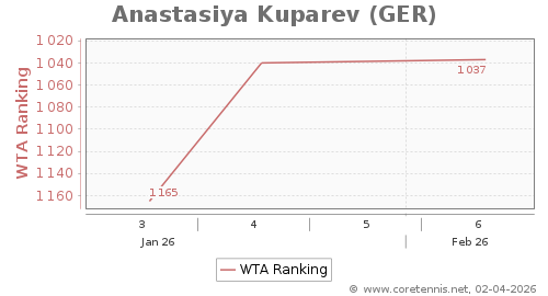 | 1037 | Anastasiya Kuparev(GER) | 3 | 437 | 416 | Graph |