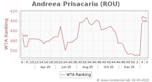 | 435 | Andreea Prisacariu(ROU) | 4 | 75 | 8 | Graph |