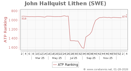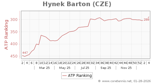 | 24 | Tomas Machac(CZE) | 11 | 8 | 2 | Graph |