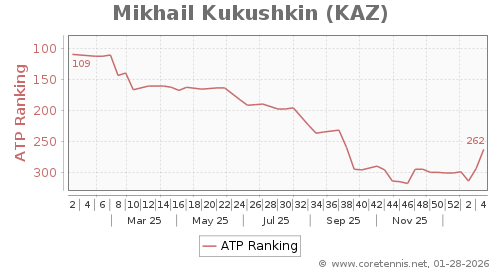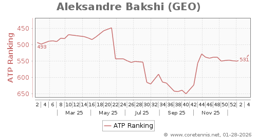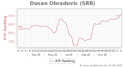 | 539 | Thanasi Kokkinakis(AUS) | 131 | 85 | 381 | Graph |