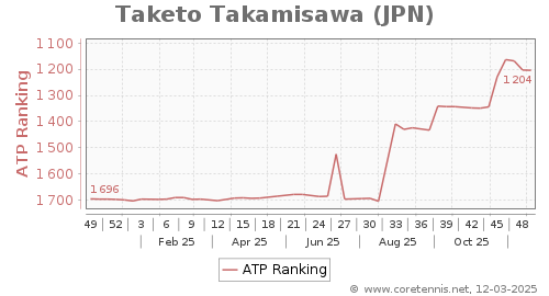 | 1163 | Taketo Takamisawa(JPN) | 66 | 537 | 523 | Graph |
