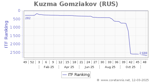 | 2688 | Kuzma Gomziakov(RUS) | 28 | 2406 | 2355 | Graph |