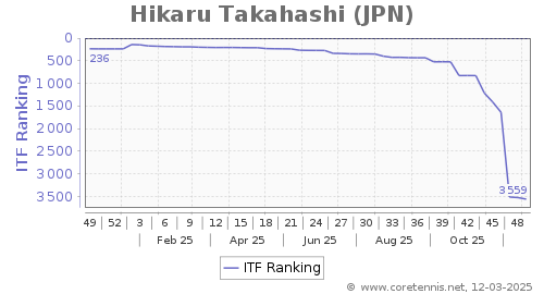 | 3559 | Hikaru Takahashi(JPN) | 35 | 3321 | 3288 | Graph |