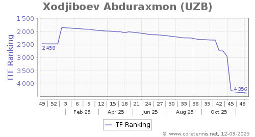 | 4356 | Xodjiboev Abduraxmon(UZB) | 21 | 1892 | 2285 | Graph |