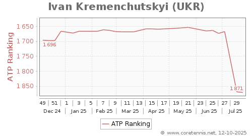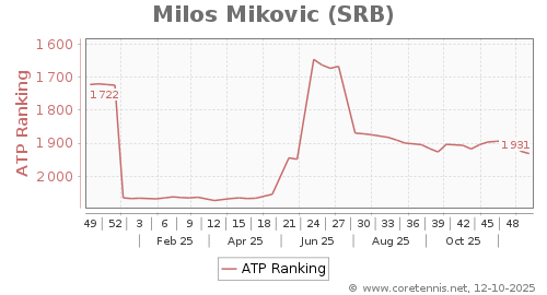 | 1291 | Nikola Jovic(SRB) | 8 | 852 | 283 | Graph |