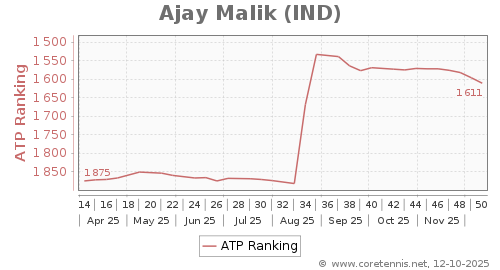 | 867 | Lautaro Agustin Falabella(ARG) | 11 | 147 | 112 | Graph |