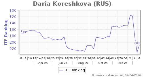 | 209 | Daria Koreshkova(RUS) | 22 | 61 | 18 | Graph |