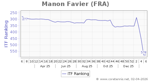 | 578 | Manon Favier(FRA) | 1 | 225 | 249 | Graph |