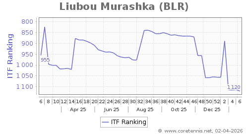 | 1120 | Liubou Murashka(BLR) | 7 | 64 | 211 | Graph |