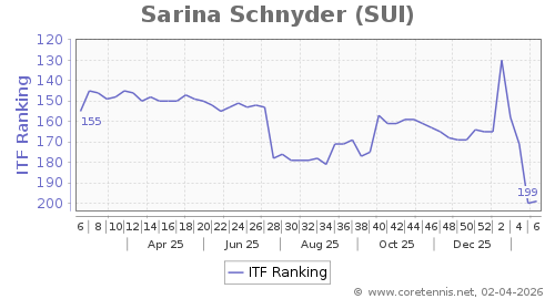 | 199 | Sarina Schnyder(SUI) | 1 | 34 | 20 | Graph |