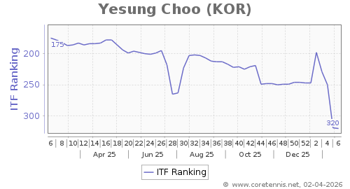 | 320 | Yesung Choo(KOR) | 1 | 73 | 118 | Graph |