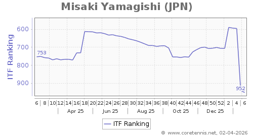 | 952 | Misaki Yamagishi(JPN) | 10 | 246 | 280 | Graph |