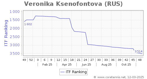 | 3514 | Veronika Ksenofontova(RUS) | 25 | 2021 | 1284 | Graph |