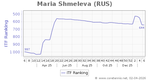 | 644 | Maria Shmeleva(RUS) | 2 | 12 | 57 | Graph |