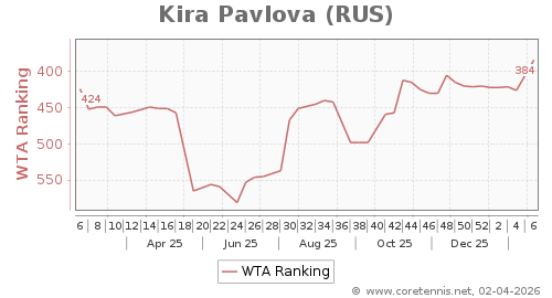 | 384 | Kira Pavlova(RUS) | 42 | 38 | 67 | Graph |