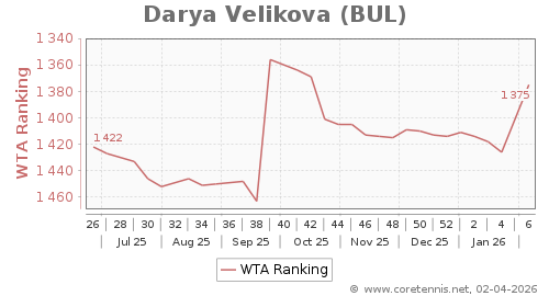 | 1375 | Darya Velikova(BUL) | 51 | 36 | 77 | Graph |