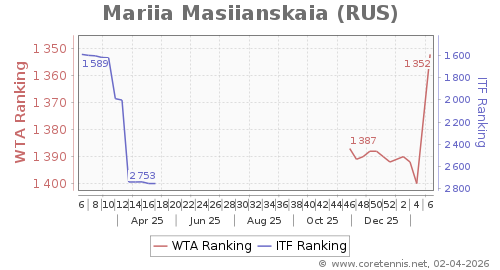 | 1352 | Mariia Masiianskaia(RUS) | 48 | 122 | 101 | Graph |