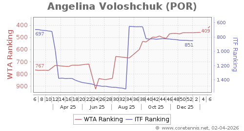 | 409 | Angelina Voloshchuk(POR) | 55 | 52 | 250 | Graph |