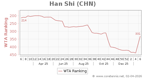 | 1297 | Khrystyna Vozniak(UKR) | 194 | 177 | 31 | Graph |