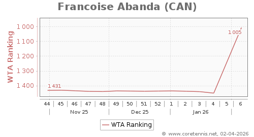 | 162 | Bianca Andreescu(CAN) | 66 | 66 | 25 | Graph |