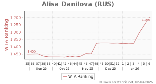 | 1195 | Alisa Danilova(RUS) | 111 | 183 | 258 | Graph |