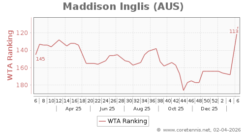 | 113 | Maddison Inglis(AUS) | 55 | 51 | 44 | Graph |