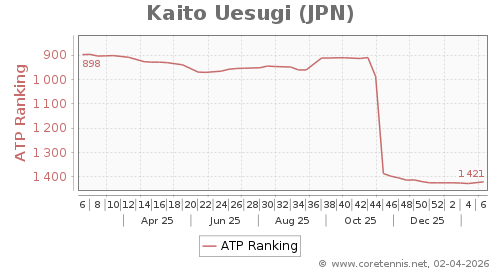 | 1421 | Kaito Uesugi(JPN) | 7 | 4 | 474 | Graph |