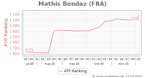 | 1121 | Mathis Bondaz(FRA) | 74 | 1042 | 1013 | Graph |