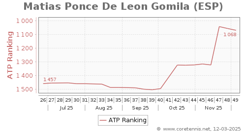 | 1068 | Matias Ponce De Leon Gomila(ESP) | 13 | 1095 | 1066 | Graph |
