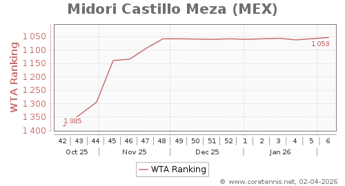 | 1053 | Midori Castillo Meza(MEX) | 9 | 7 | 400 | Graph |