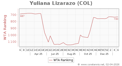 | 730 | Yuliana Lizarazo(COL) | 4 | 1 | 415 | Graph |