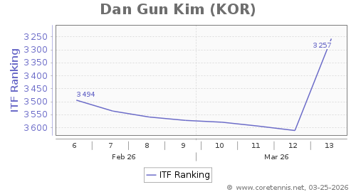 | 3257 | Dan Gun Kim(KOR) | 354 | 1211 | 227 | Graph |