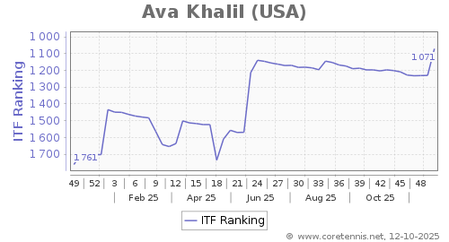 | 1071 | Ava Khalil(USA) | 159 | 631 | 69 | Graph |