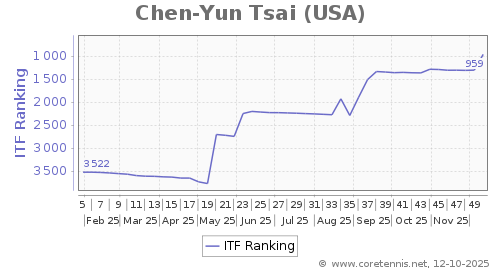 | 959 | Chen-Yun Tsai(USA) | 343 | 3081 | 1241 | Graph |
