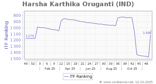 | 1038 | Harsha Karthika Oruganti(IND) | 435 | 133 | 120 | Graph |