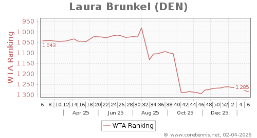 | 1285 | Laura Brunkel(DEN) | 11 | 23 | 305 | Graph |