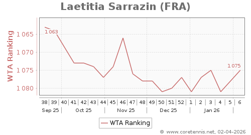 | 1073 | Laetitia Sarrazin(FRA) | 2 | 8 | 374 | Graph |