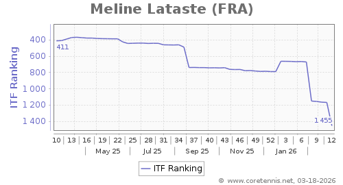 | 1455 | Meline Lataste(FRA) | 287 | 666 | 715 | Graph |