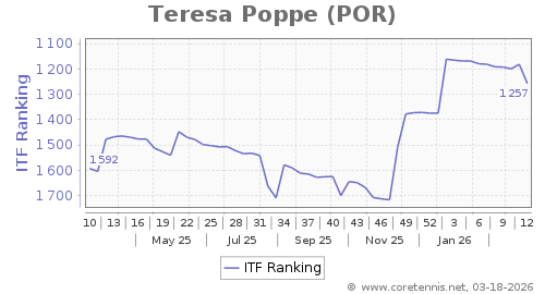 | 1257 | Teresa Poppe(POR) | 76 | 117 | 370 | Graph |