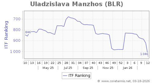 | 1046 | Uladzislava Manzhos(BLR) | 123 | 64 | 293 | Graph |