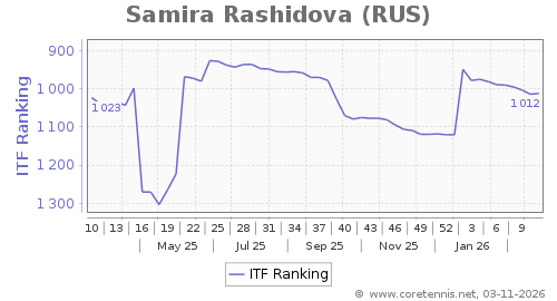 | 71 | Rada Zolotareva(RUS) | 23 | 13 | 26 | Graph |