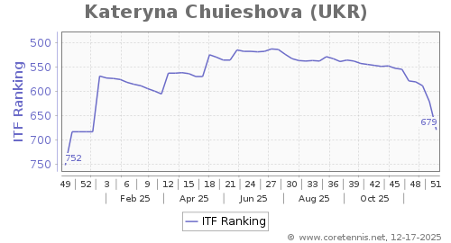 | 679 | Kateryna Chuieshova(UKR) | 58 | 4 | 161 | Graph |