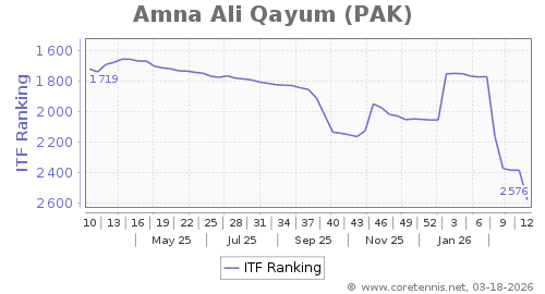 | 2576 | Amna Ali Qayum(PAK) | 194 | 523 | 666 | Graph |