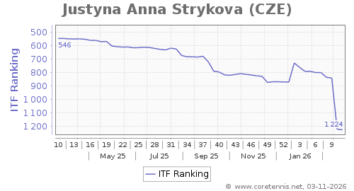 | 761 | Justyna Anna Strykova(CZE) | 33 | 108 | 134 | Graph |