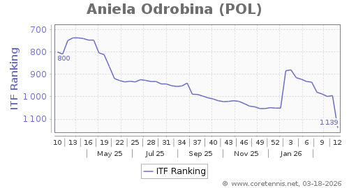 | 1139 | Aniela Odrobina(POL) | 144 | 88 | 142 | Graph |